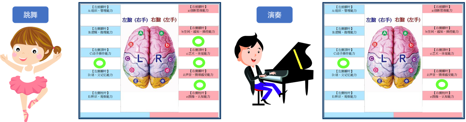 (绿色圈圈表示兴趣才艺所需优势潜能)